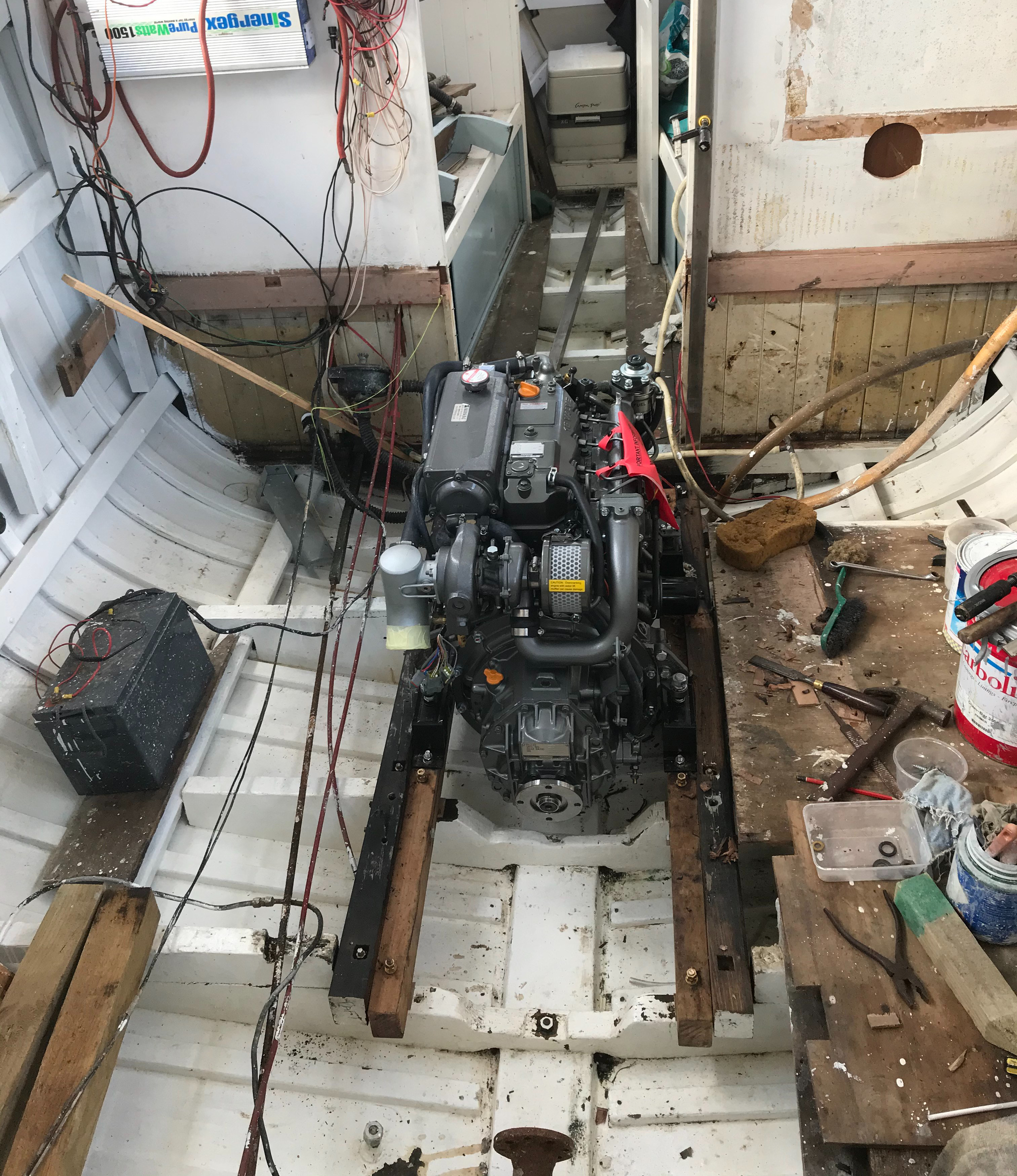 (Slide to see) the old Perkins engine vs the new Yanmar.