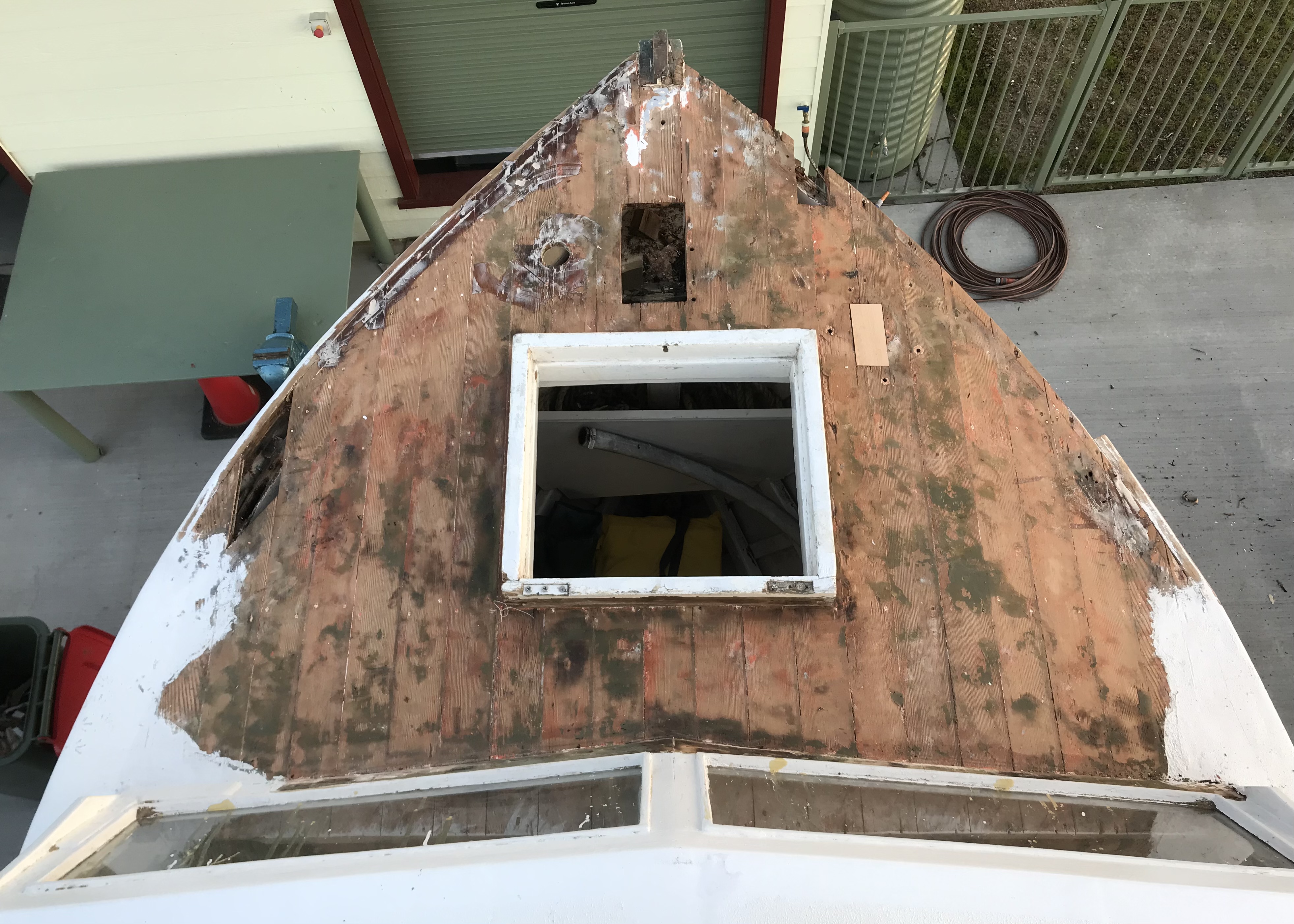 (slide to see) The old oregon deck needed a few patches but after repairing, fibreglassing and a coat of KiwiGrip, it looks much better and more importantly, it doesn’t leak any more.